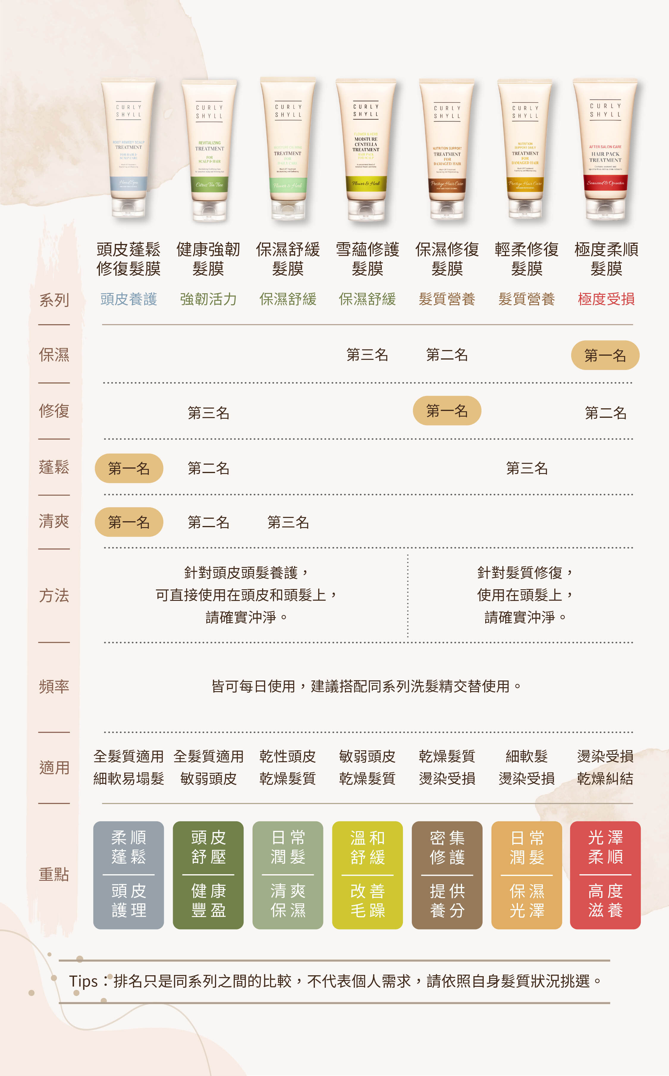 鎮定清爽恢復肌膚彈力,改善髮絲分岔恢復柔順。