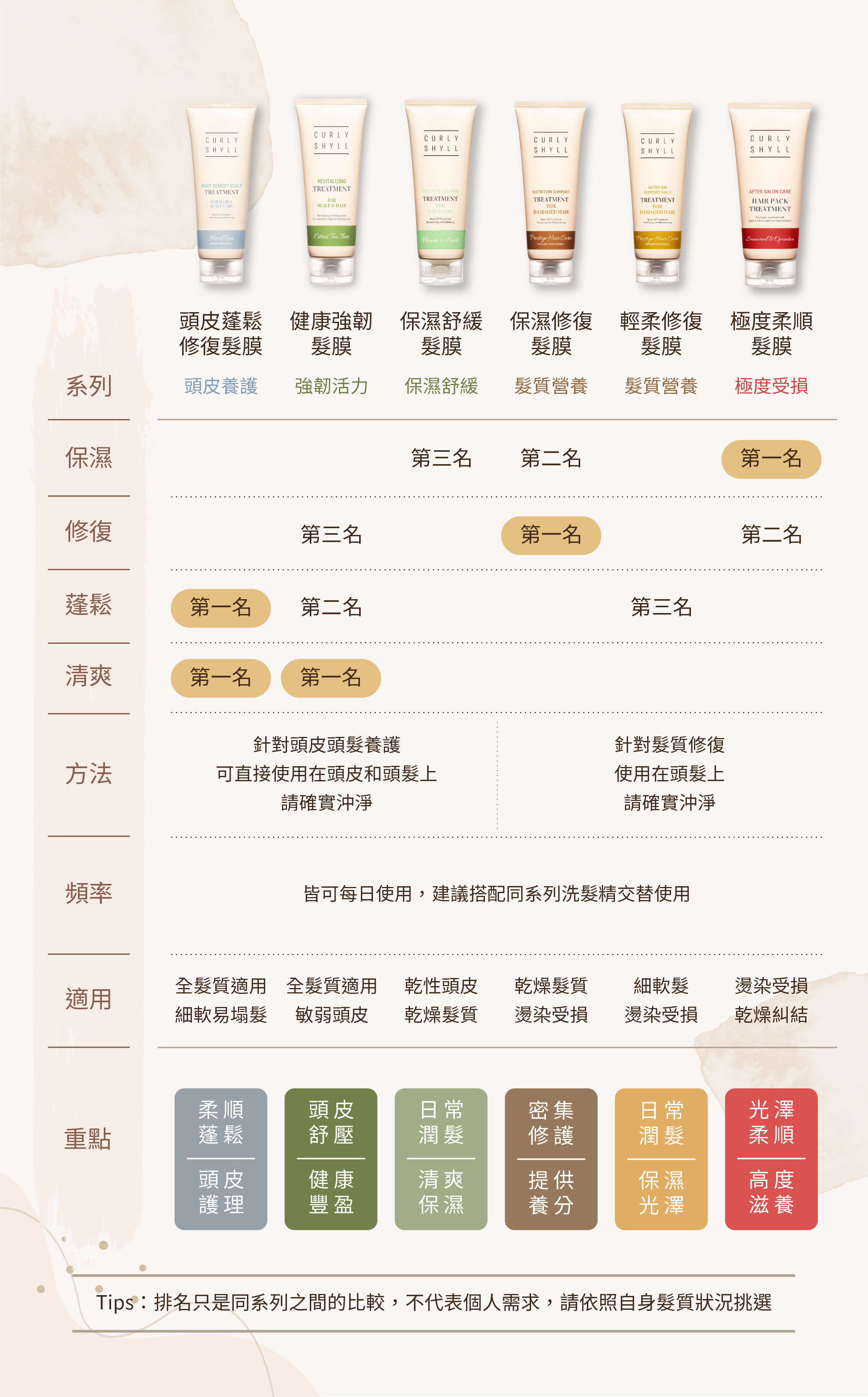 .鎮定清爽恢復肌膚彈力,改善髮絲分岔恢復柔順。