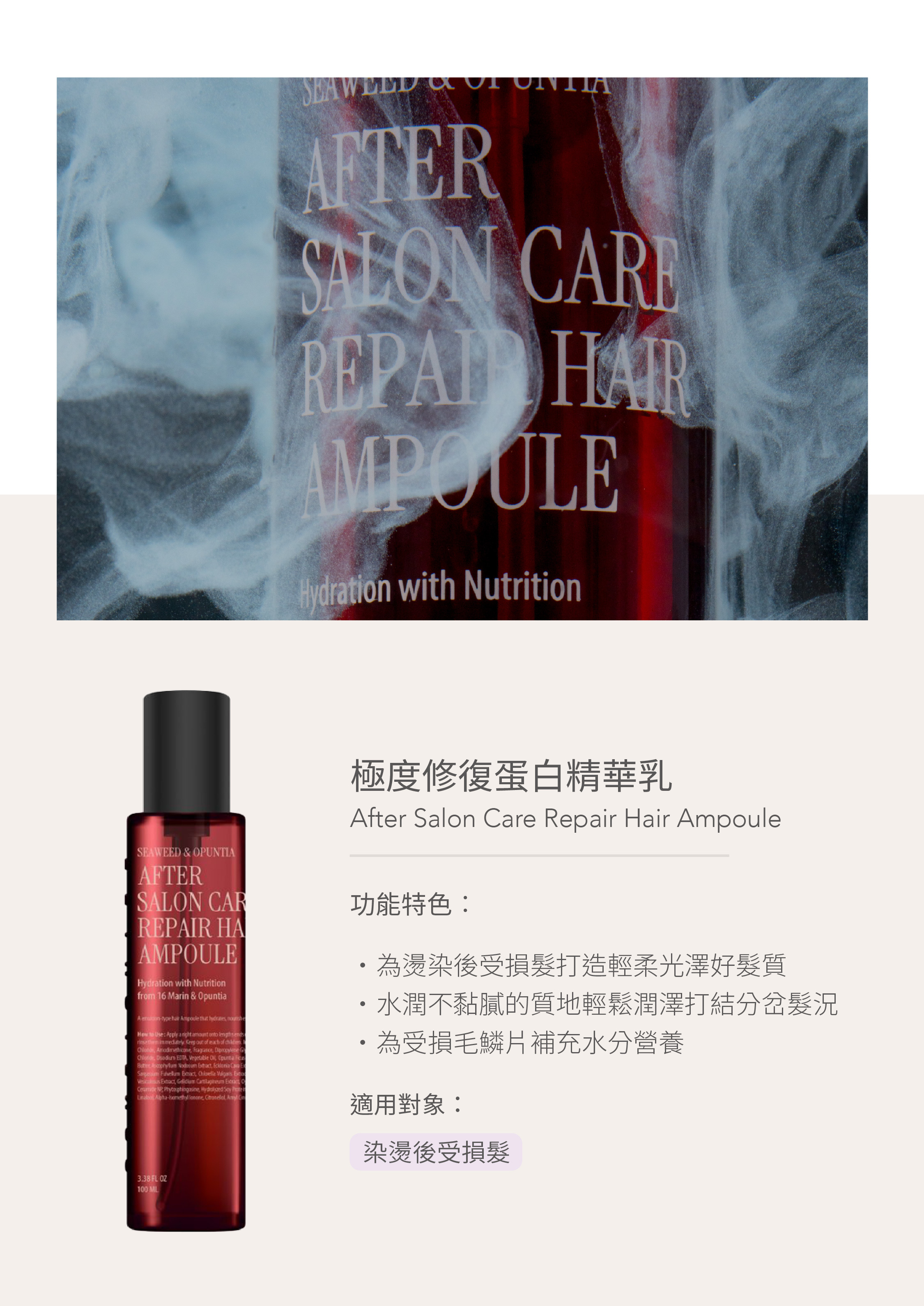 富含大量蛋白質和玻尿酸成分,打造柔順秀髮。