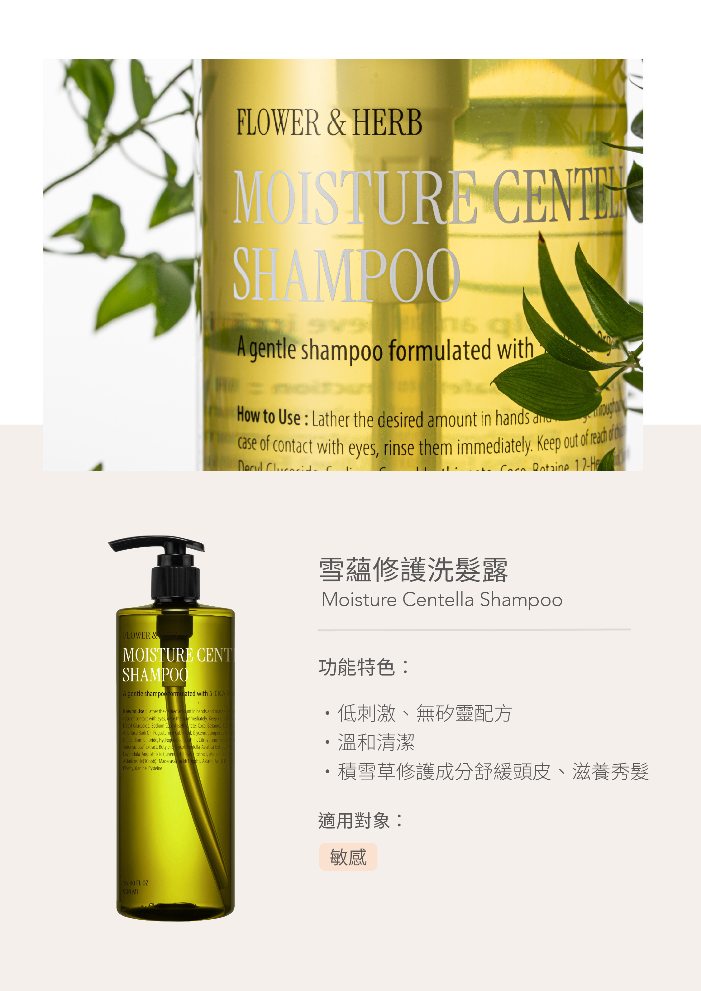 ・不含刺激性化學成分與矽靈,並運用積雪草修護成分舒緩頭皮不適感