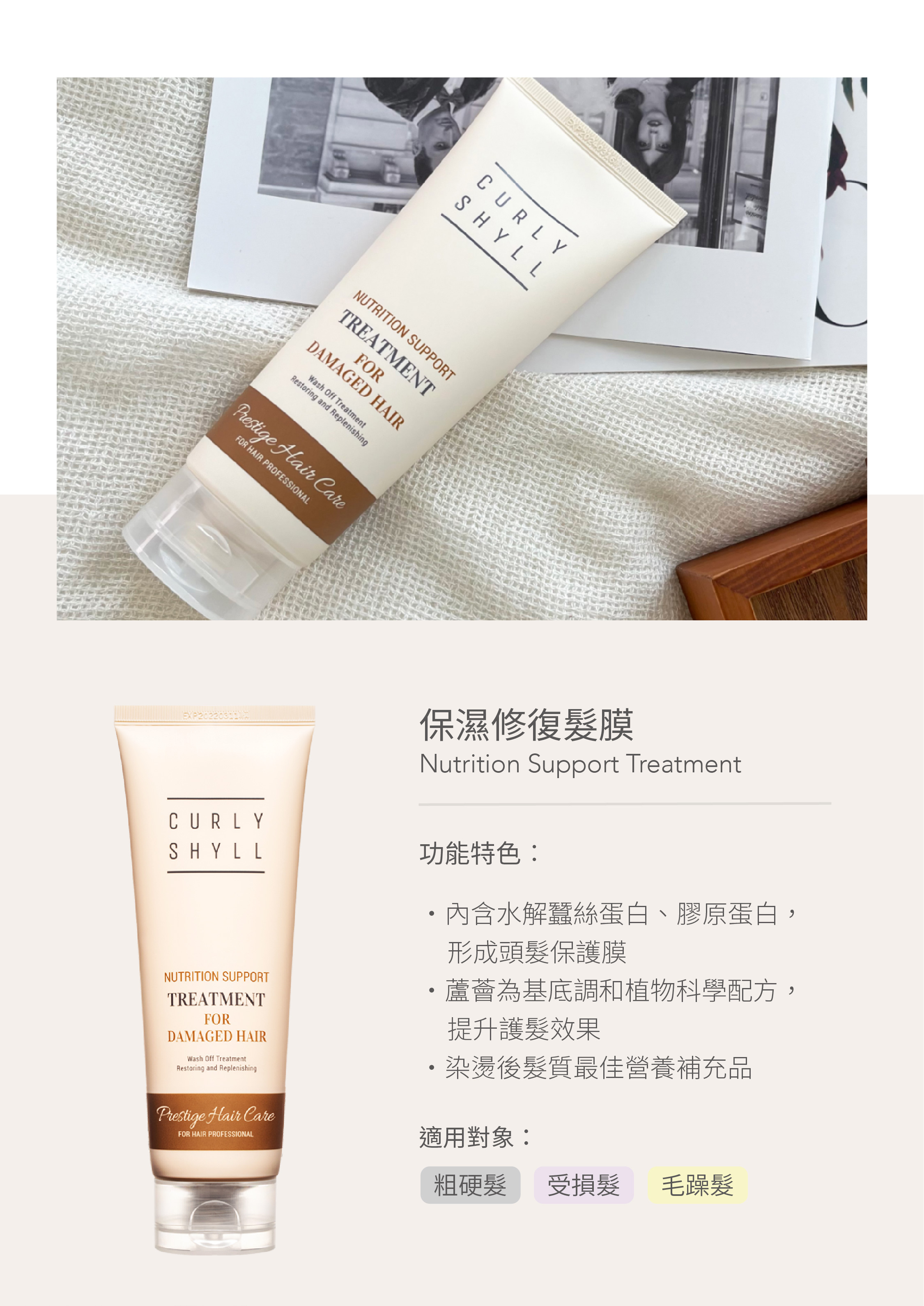 補充髮絲營養,深層修護,使秀髮柔順有彈力。