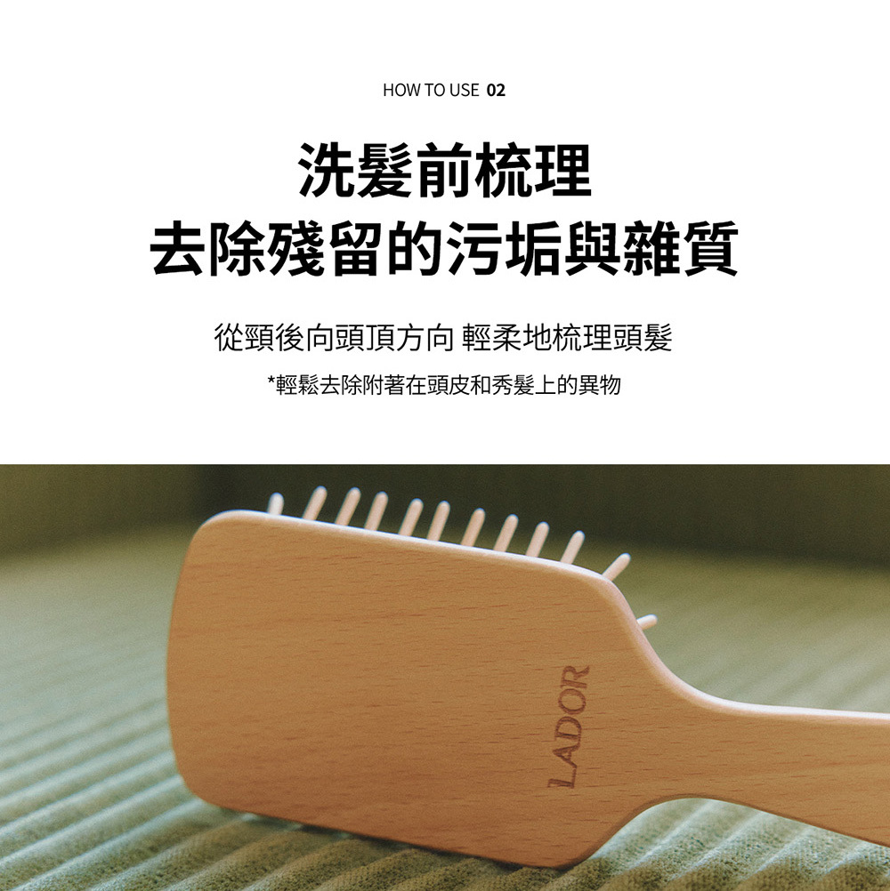 .透過梳髮過程自然按摩頭皮,幫助血液循環,放鬆緊繃頭皮。