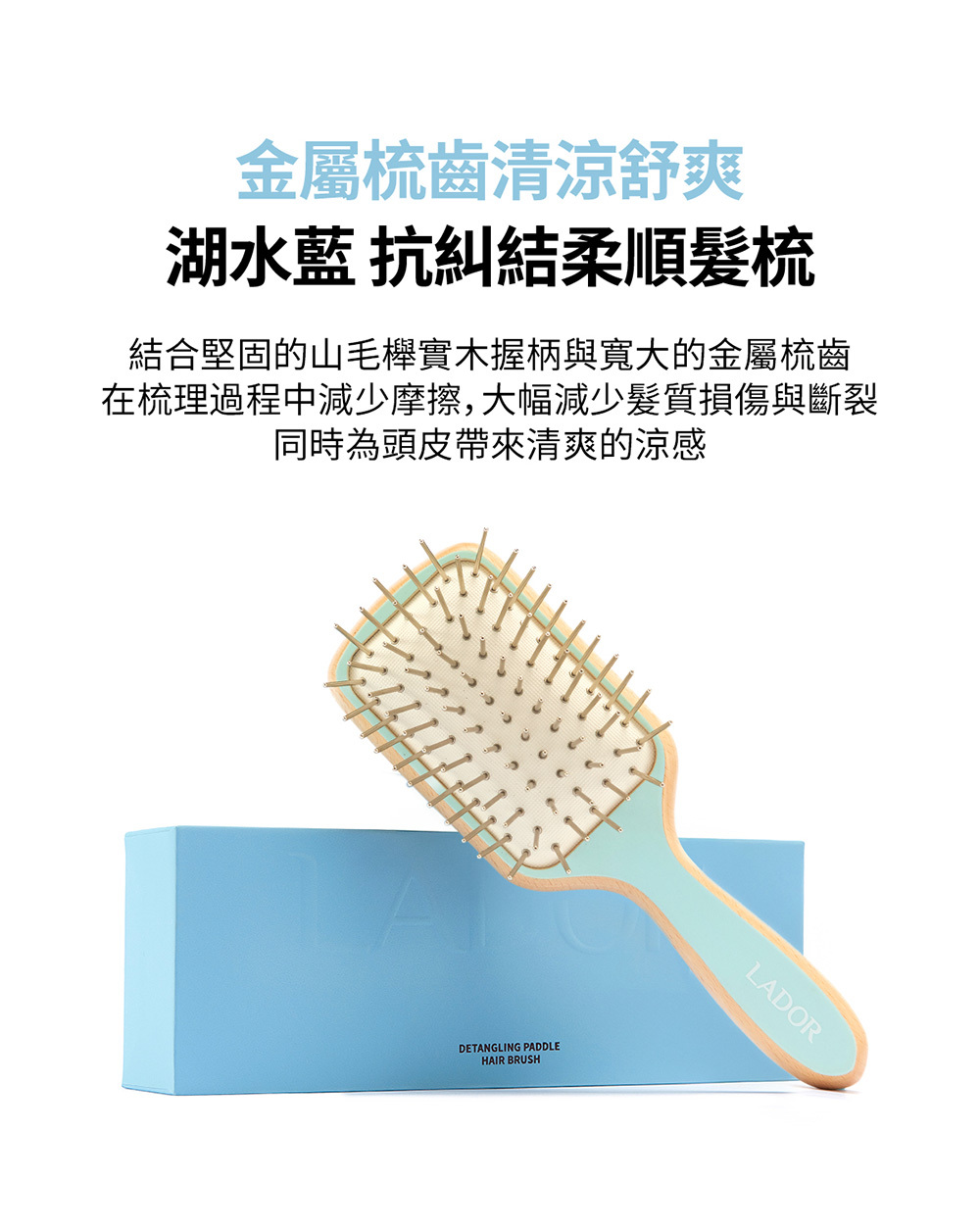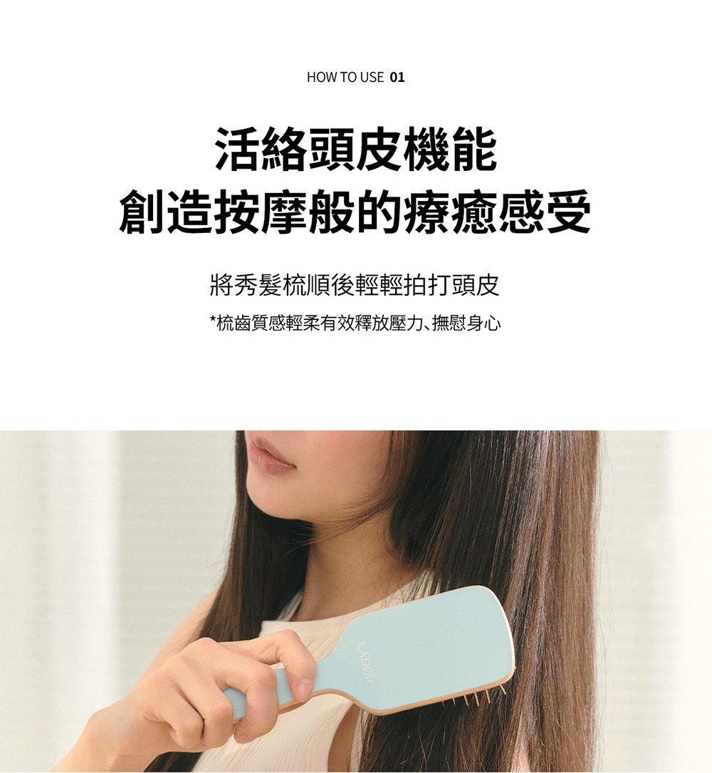 細密齒梳有效改善髮絲糾結,氣墊梳按摩頭皮。