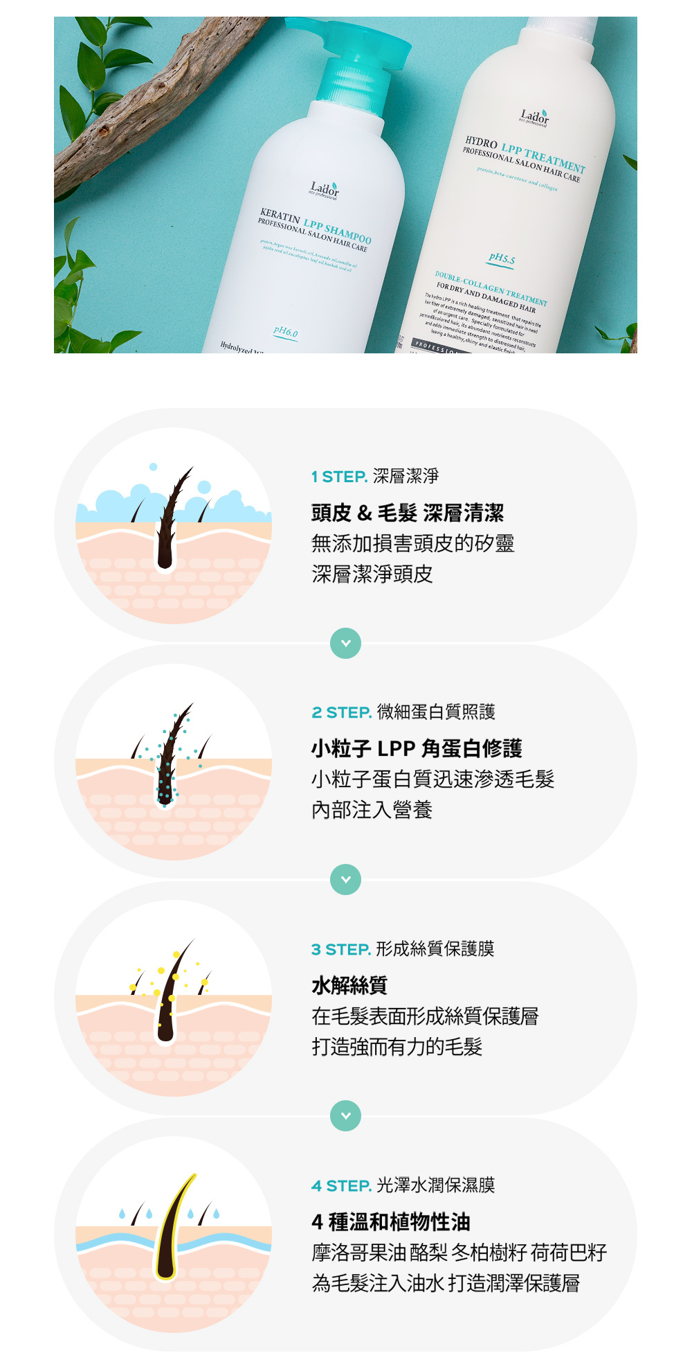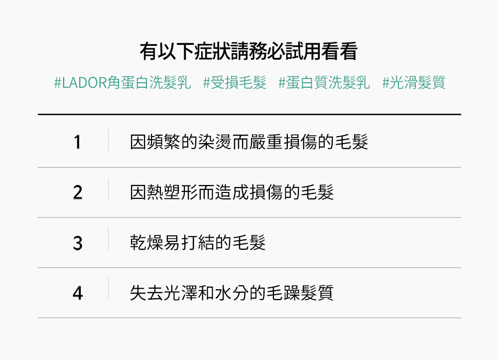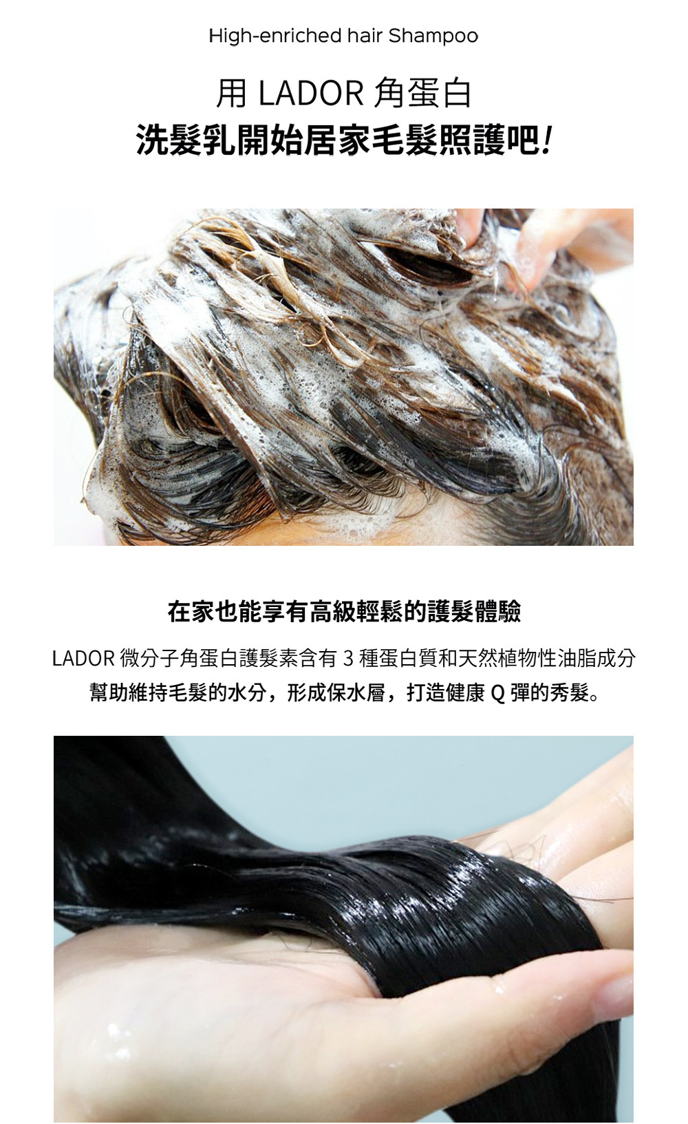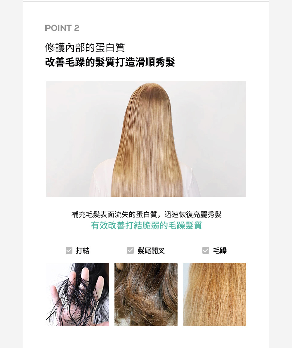 ・含三種蛋白質和天然植物油成分,使髮絲健康有彈性,深層清潔並保持油水平衡,無添加矽靈。