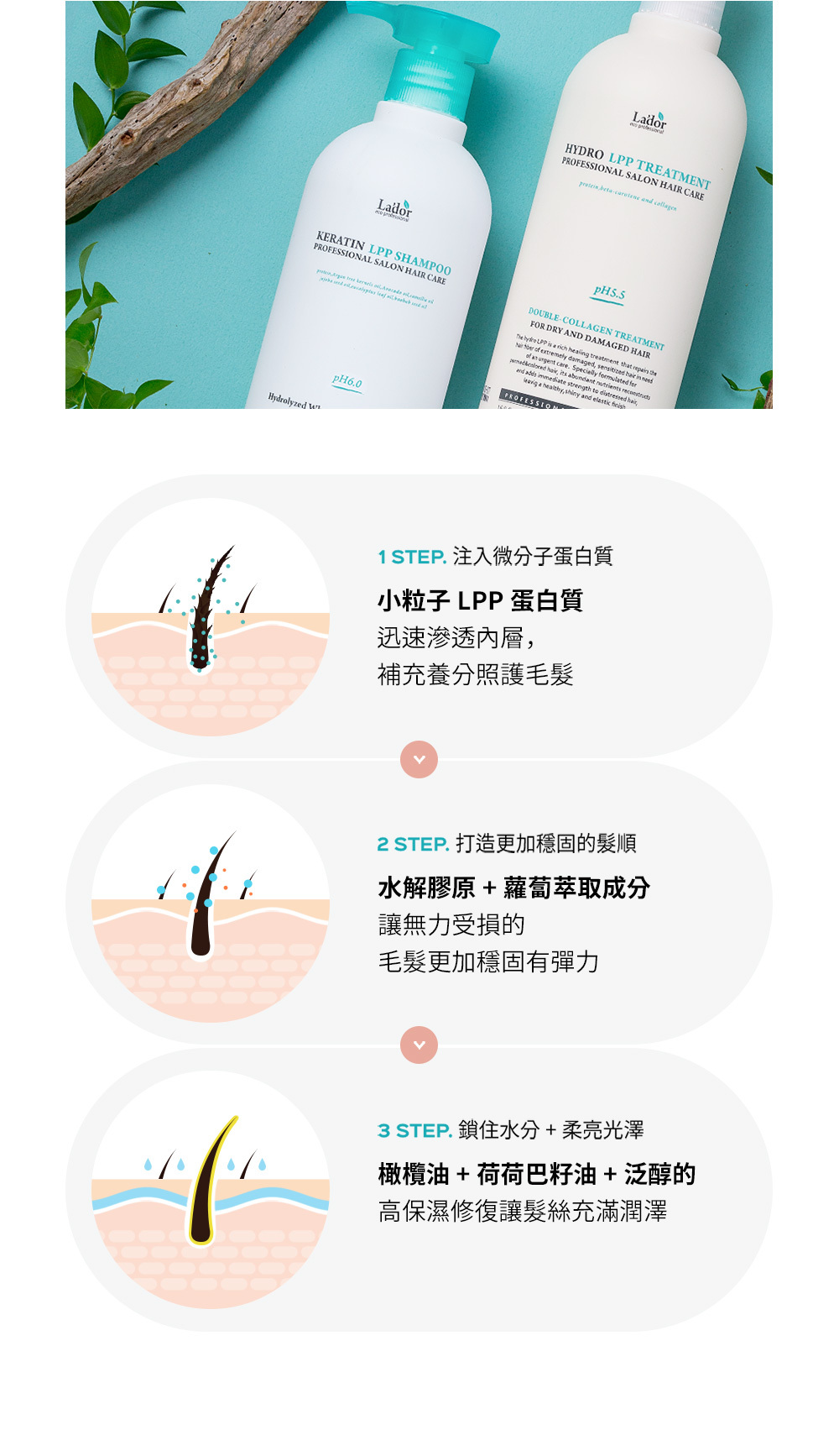 ・迅速為受損毛髮補充水分及流失的蛋白質。