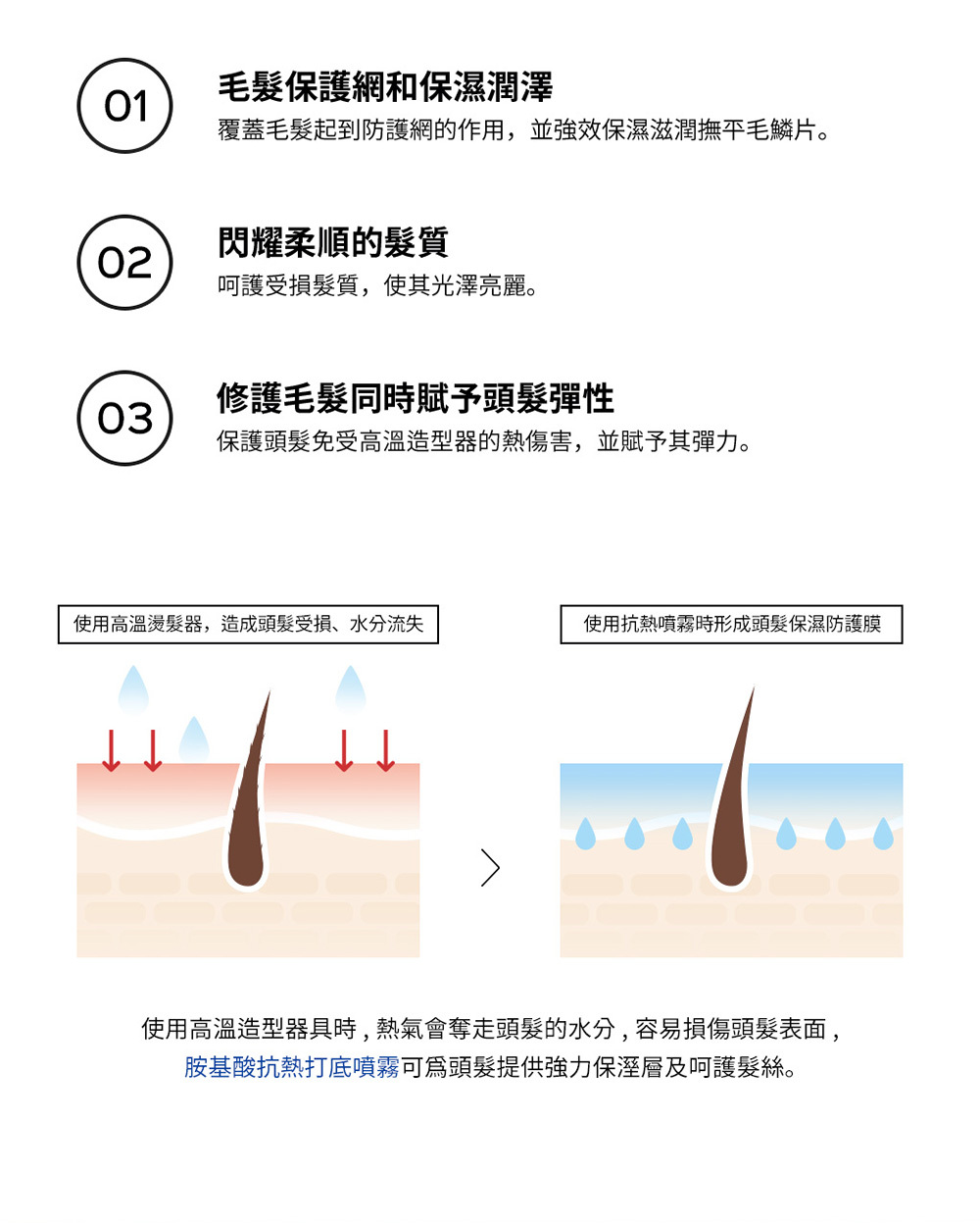 .集中護理受損,形成水潤保濕防護層,降低熱傷害。
