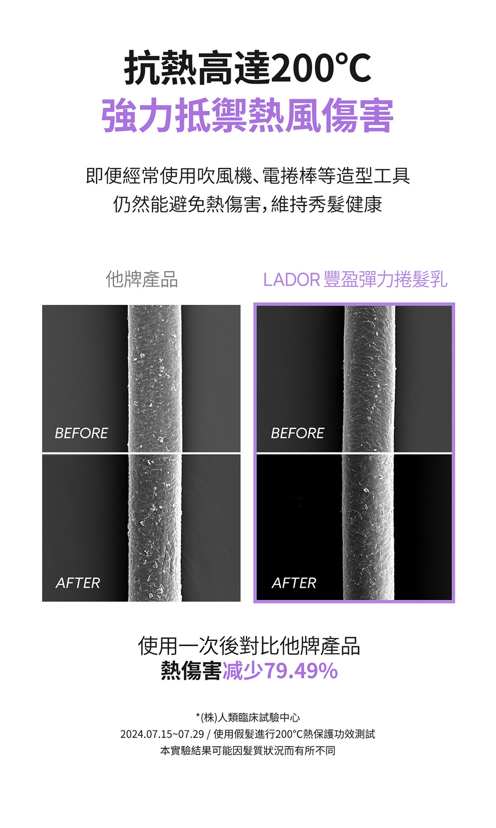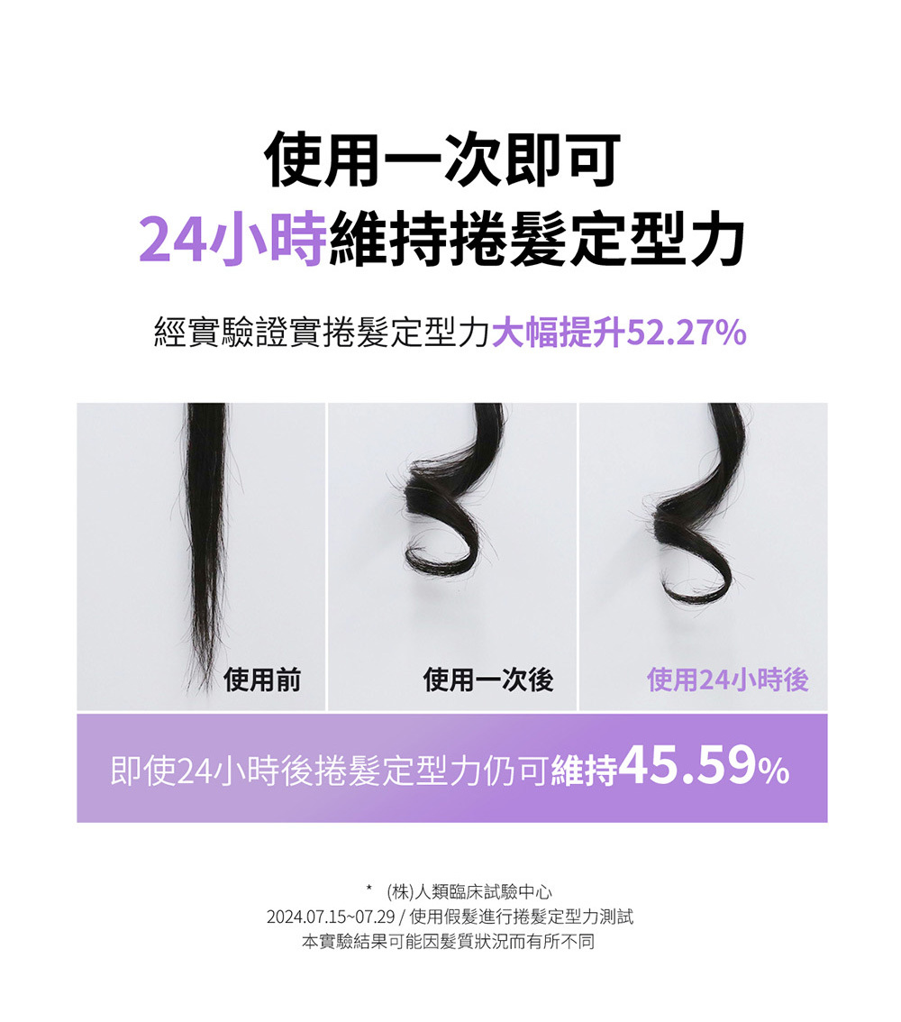 卓越保濕並具有200度熱防護效果,降低熱損傷,使秀發維持彈性。