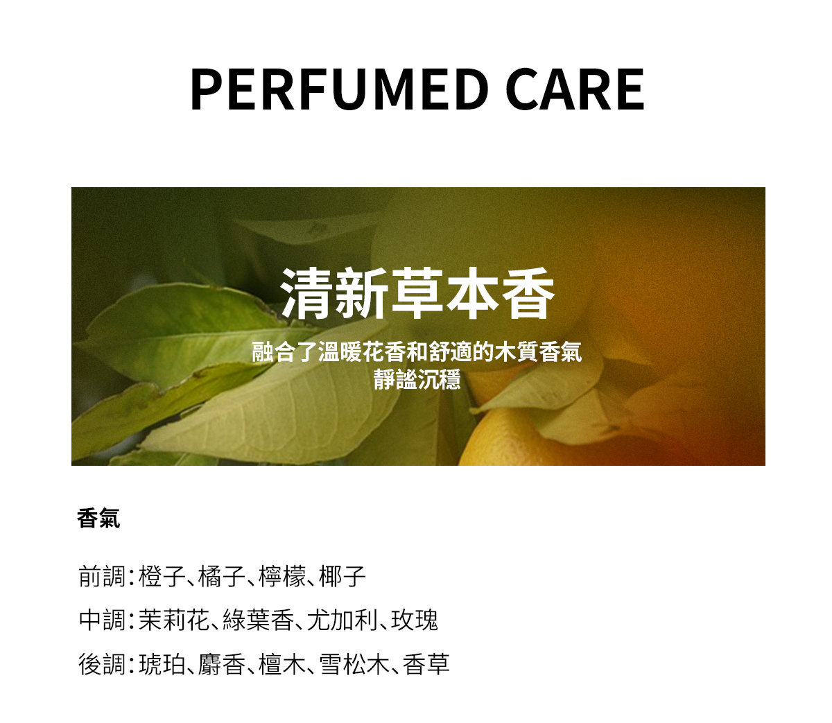 前調:佛手柑、柑橘、鼠尾草、紫羅蘭
