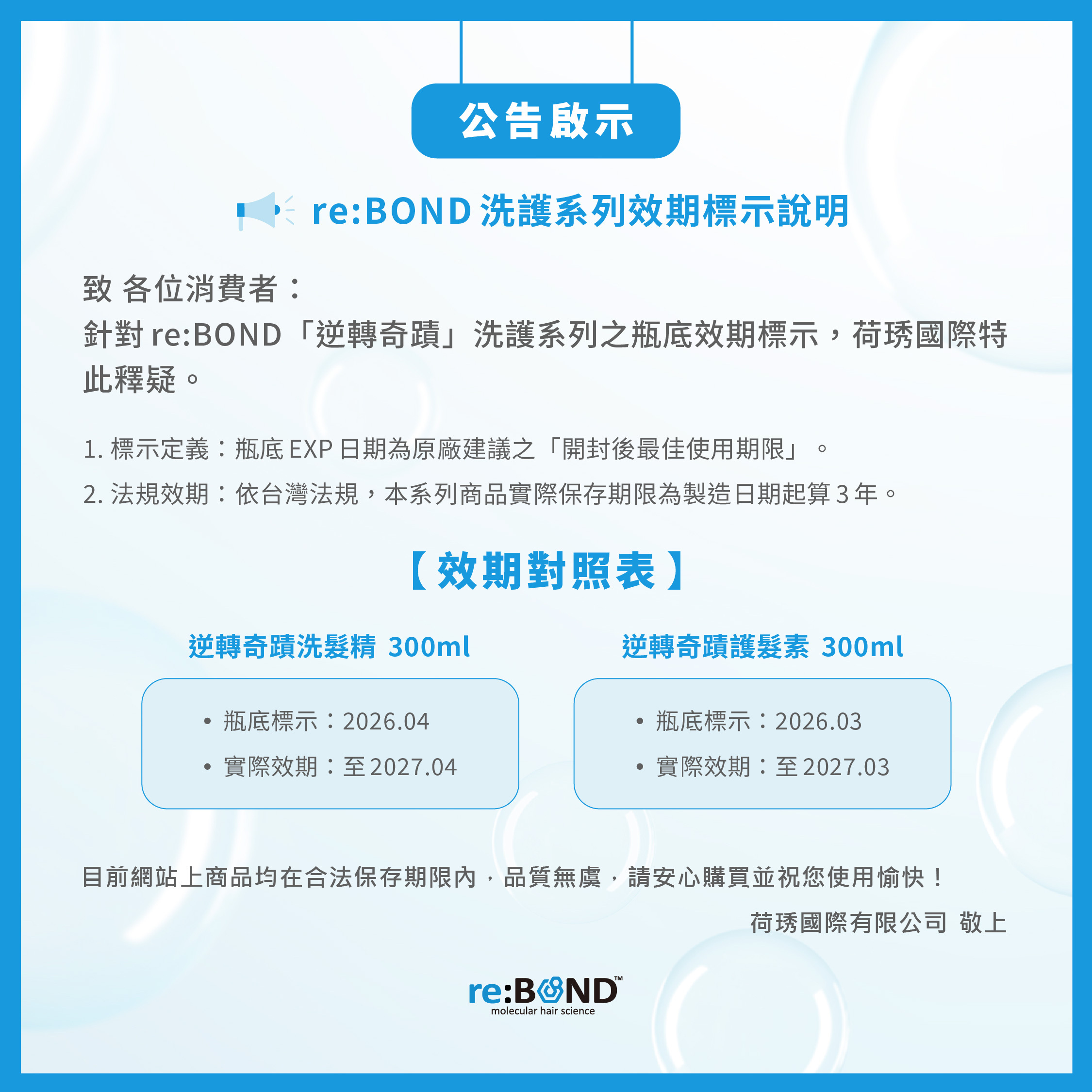 【!!瓶底EXP日期為開封後建議之有效日期,實際有效日期請以製造日期推算3年!!】